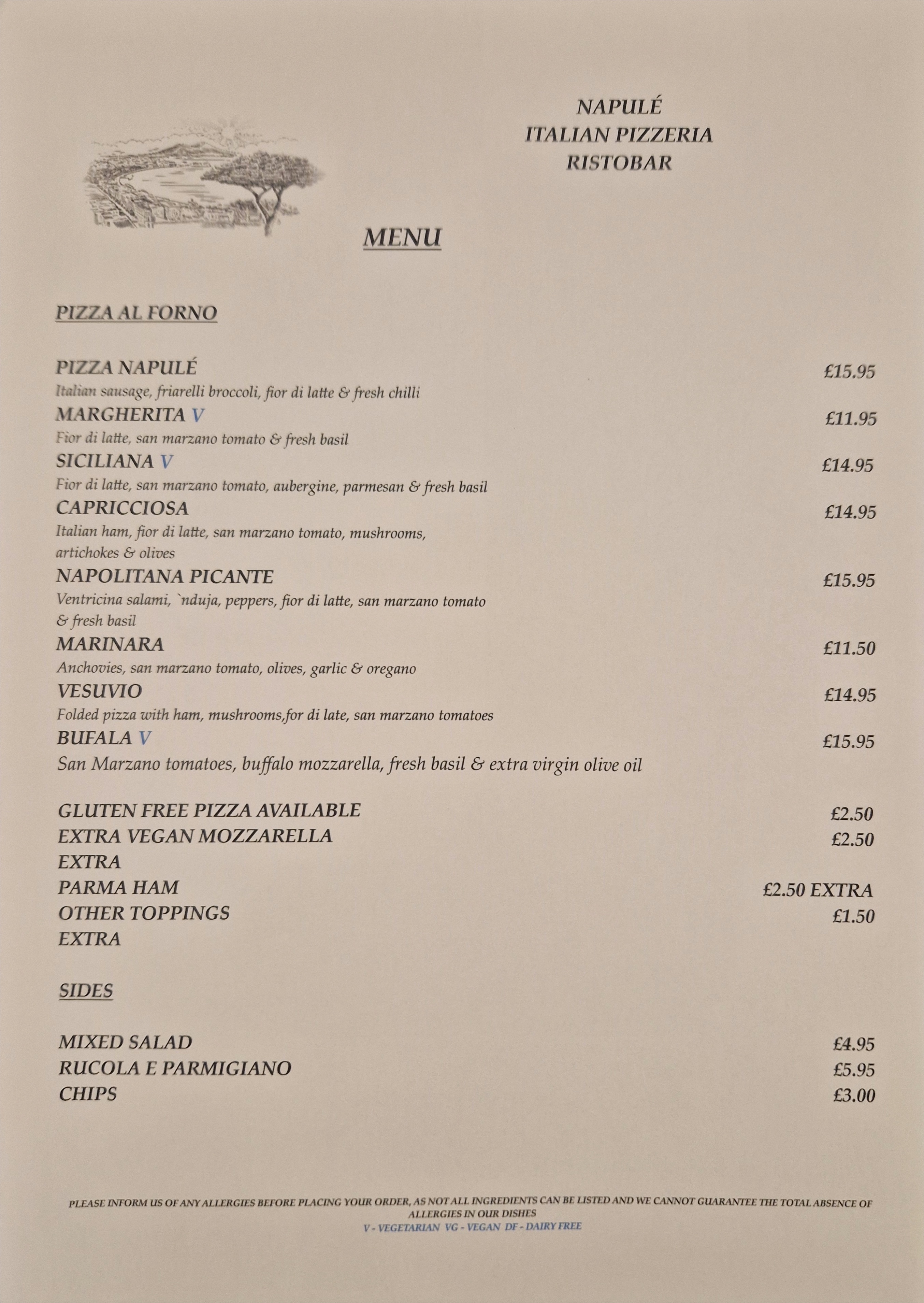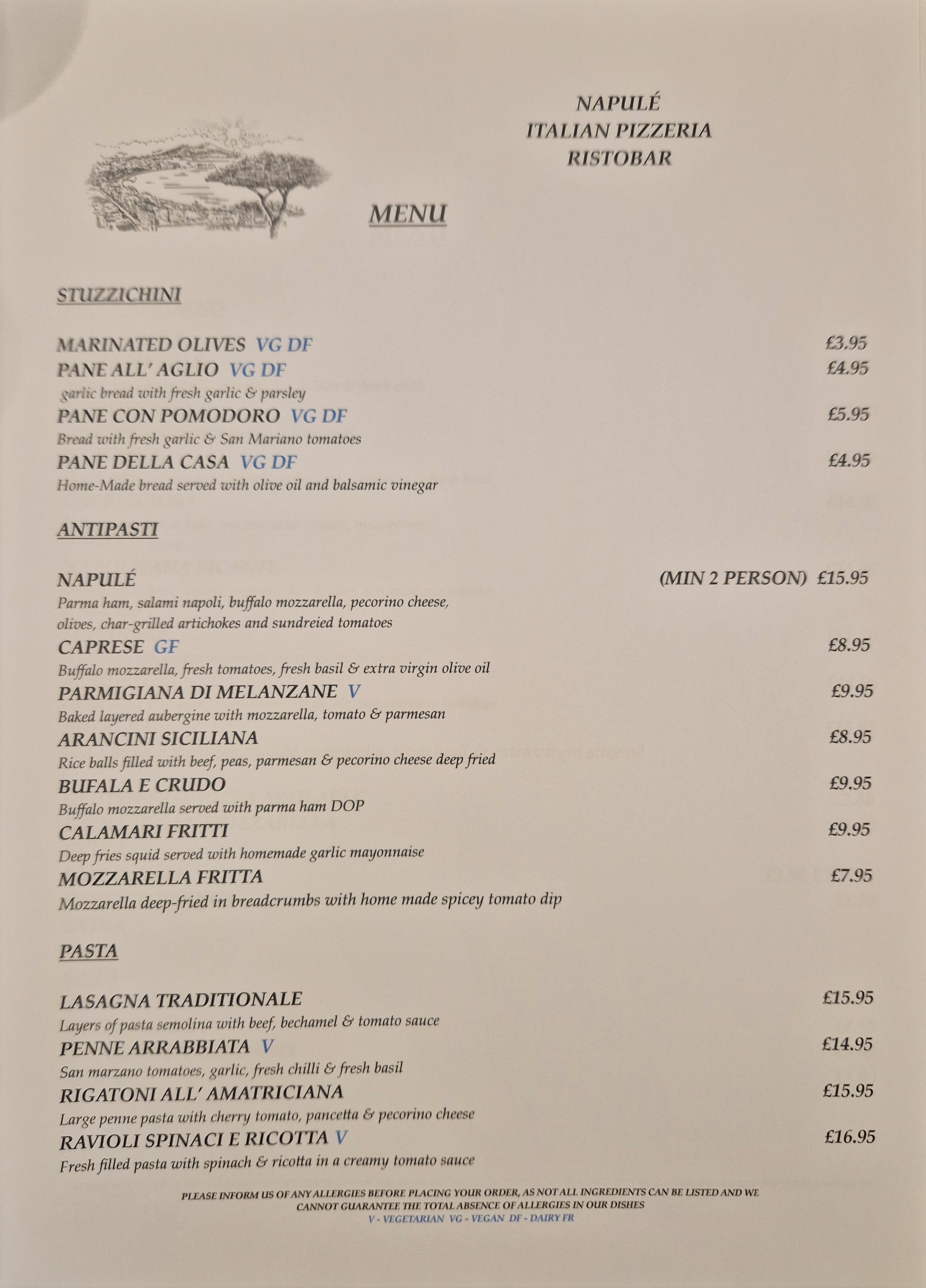 Menu from Napulé Ristobar Pizzeria