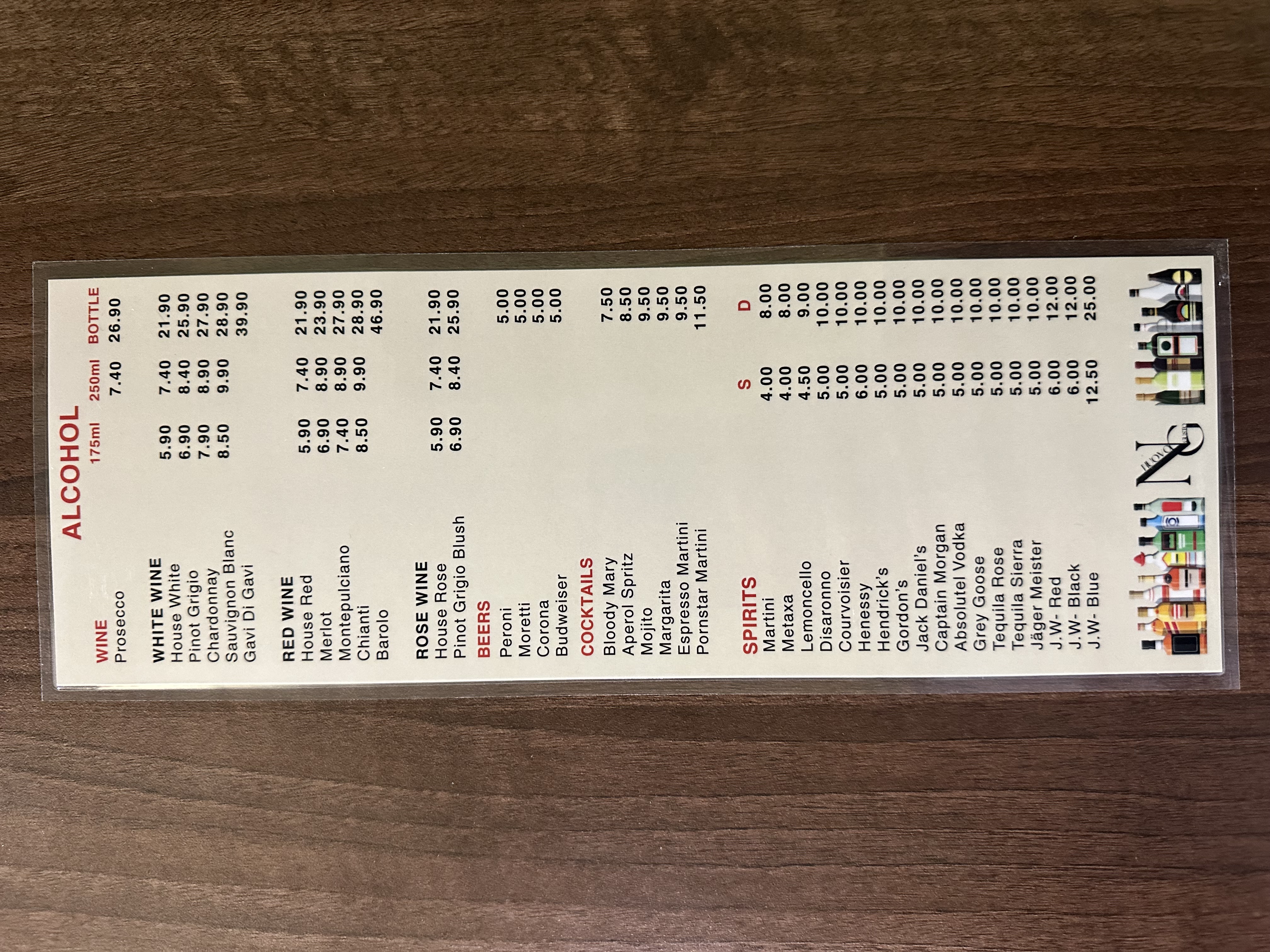 Menu from Nuovo Gusto