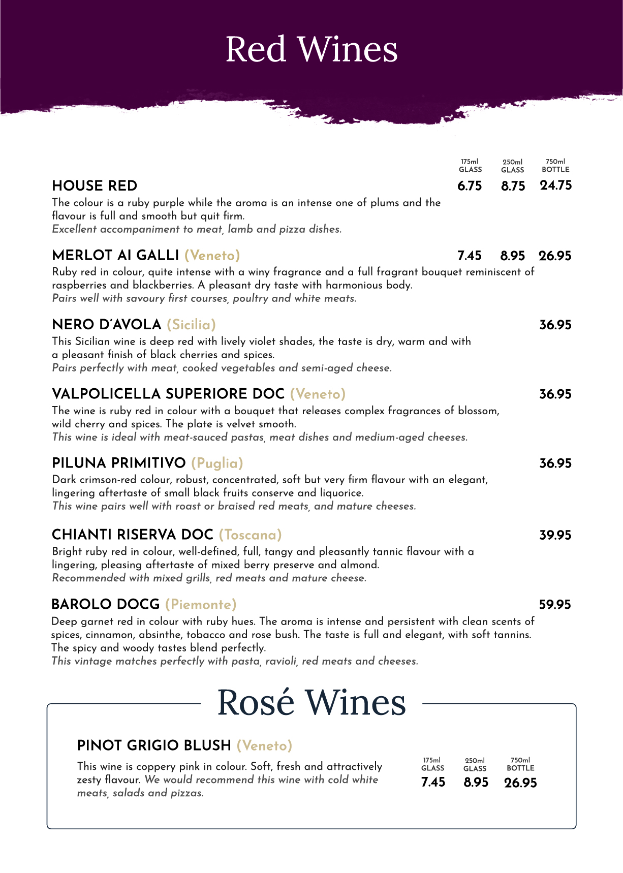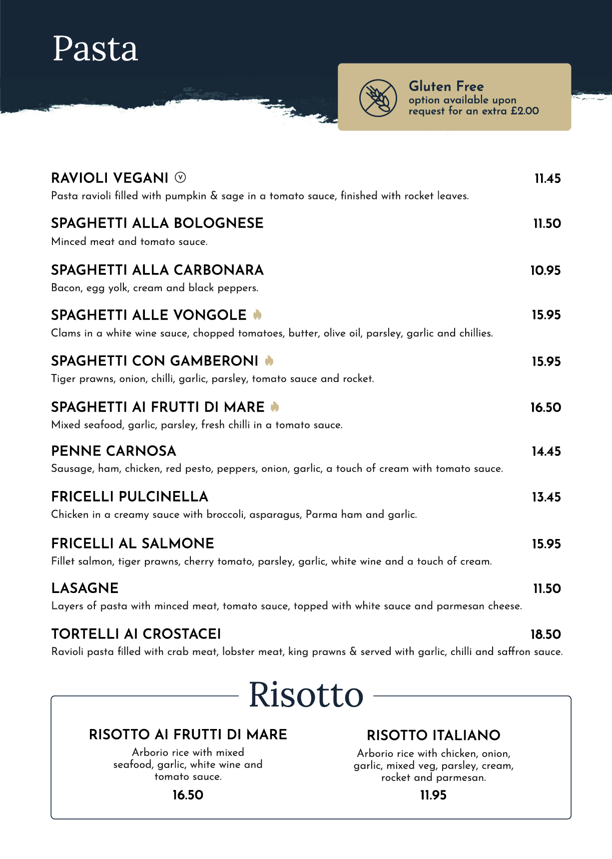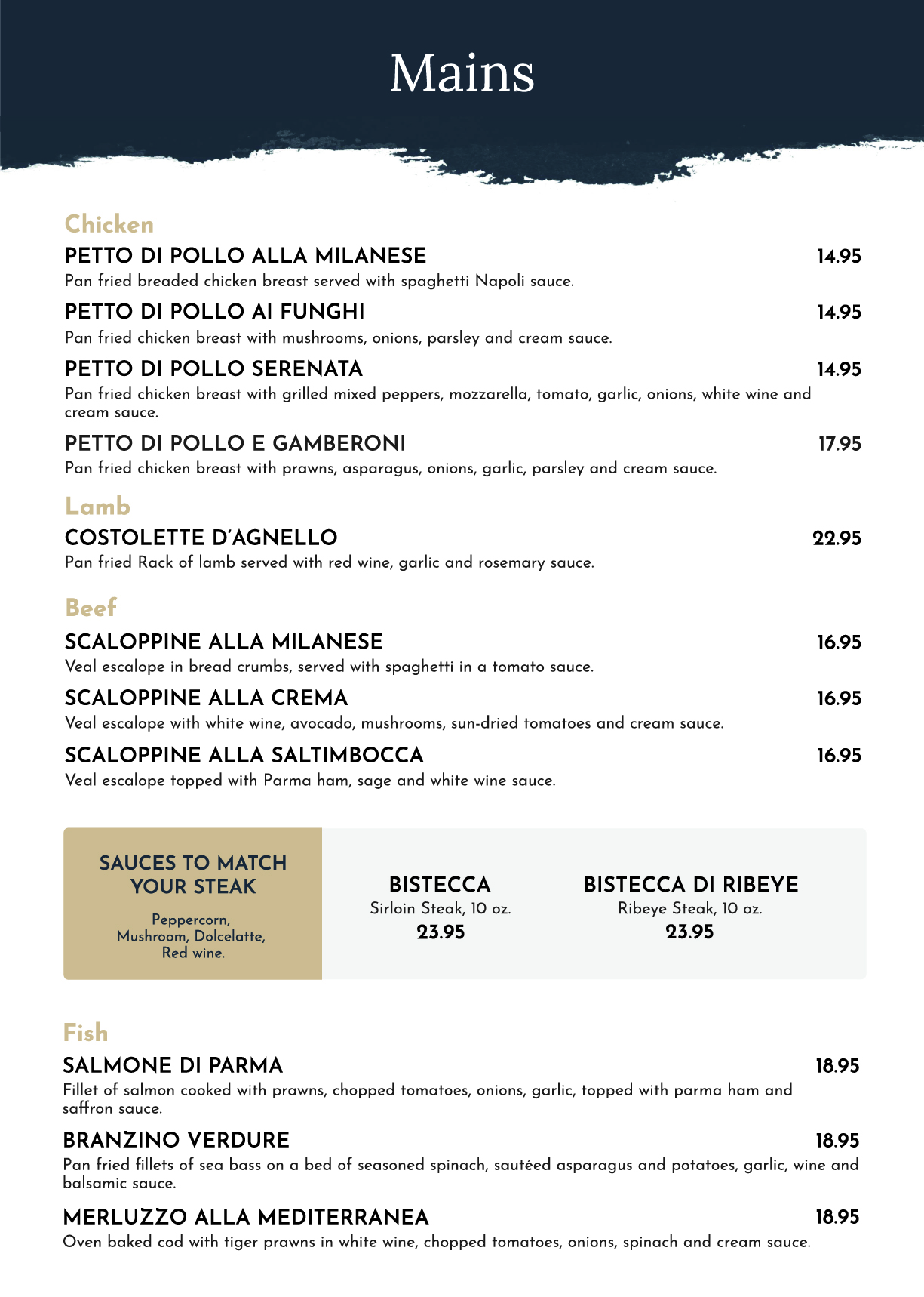 Menu from Pronto Italiano Ristorante & Pizzeria