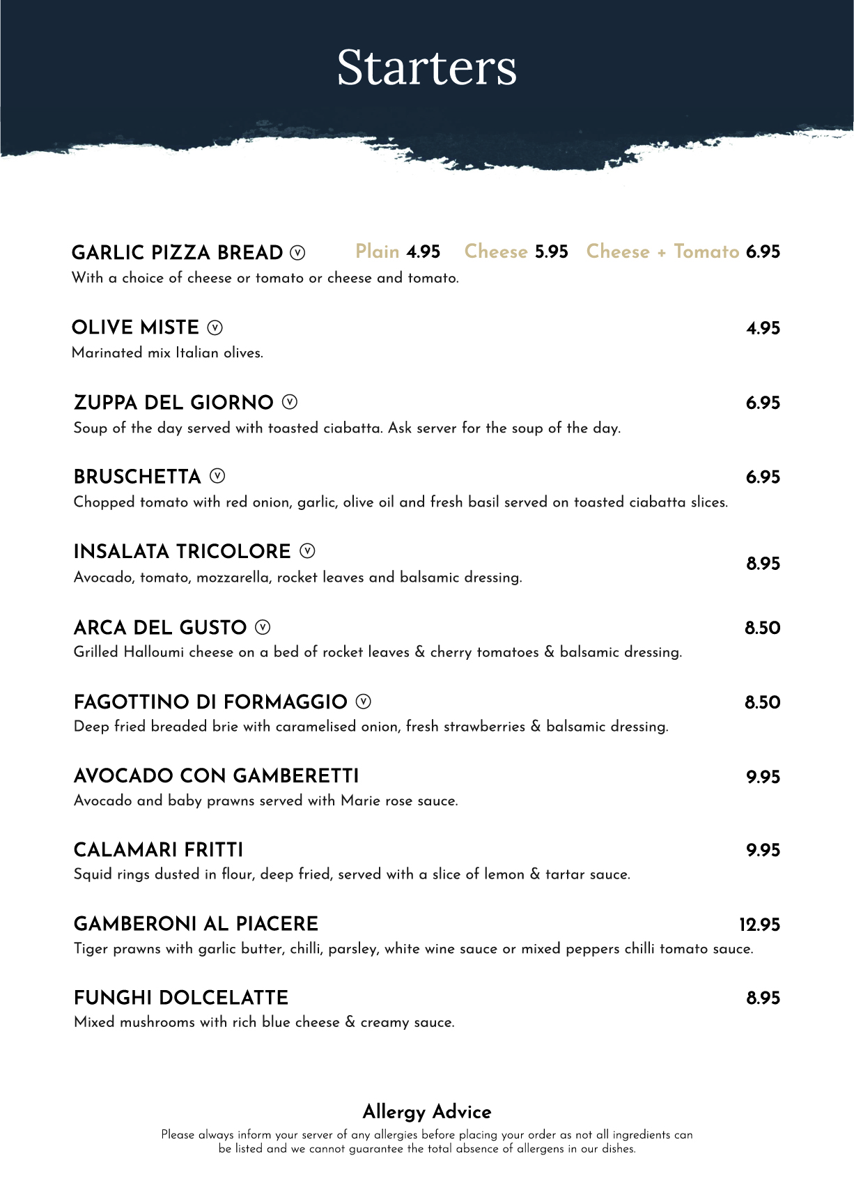 Includes dishes that are: