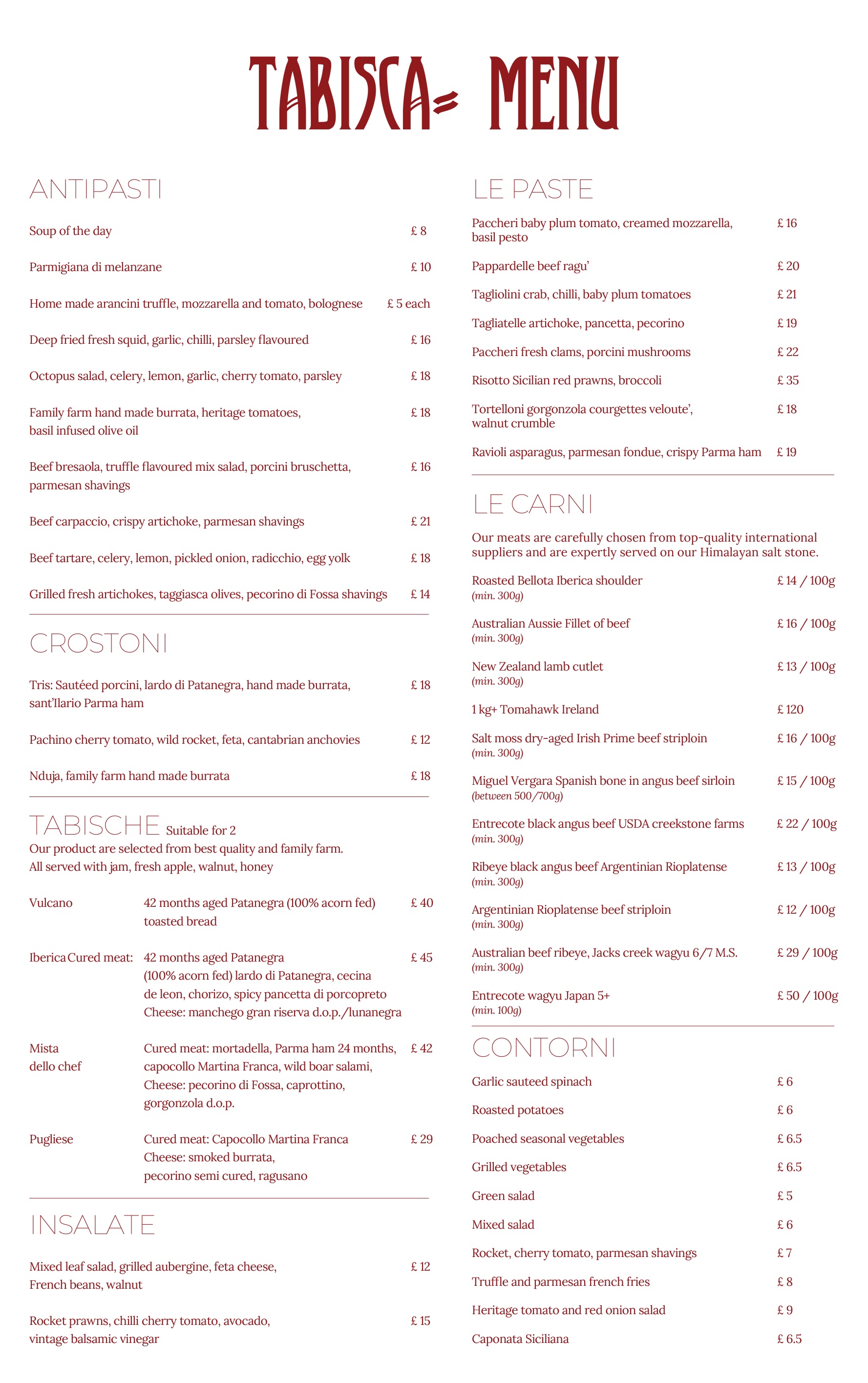 Menu from Tabisca
