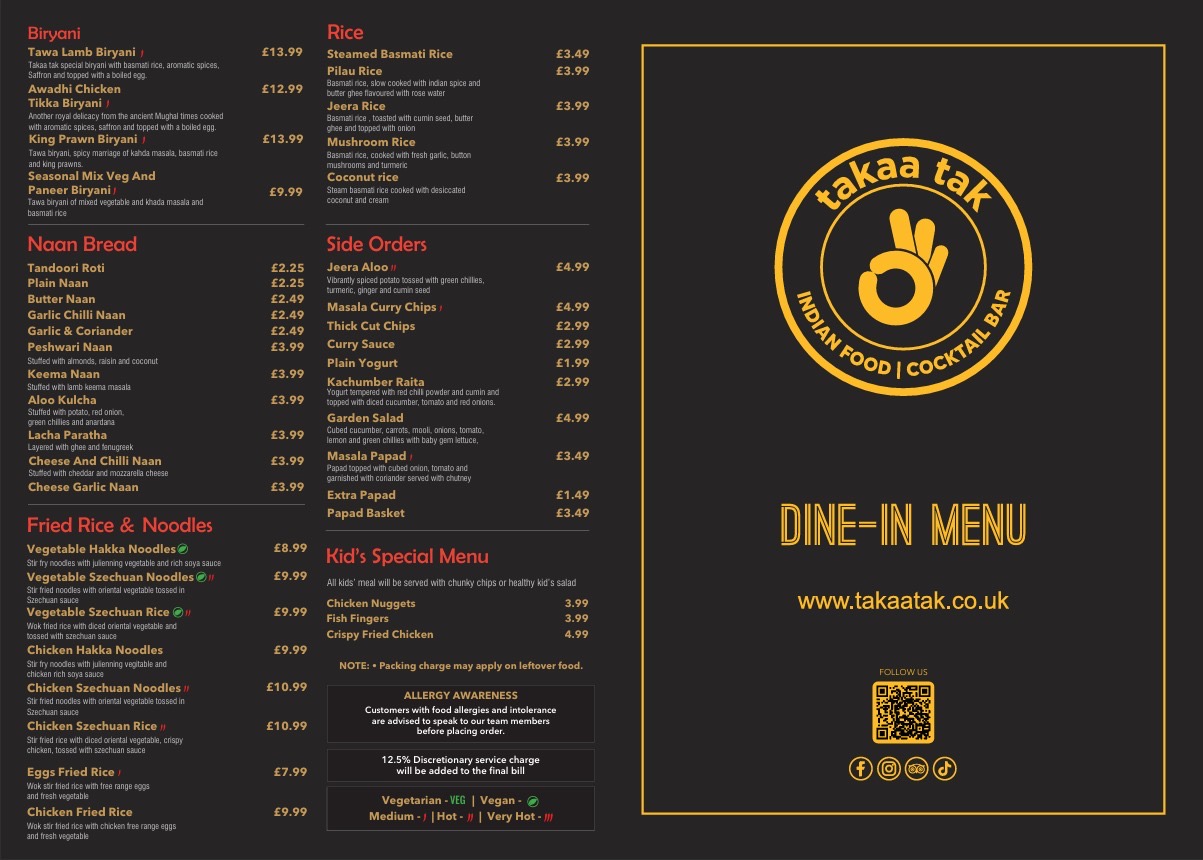 Menu from Takaa Tak - Teddington
